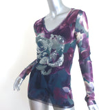 Fuzzi Jean Paul Gaultier Flower-Sequined Long Sleeve Top Purple/Blue Mesh Size Extra Large