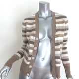 GANNI Crystal-Button Striped Cashmere Cardigan Beige/Cream Size Extra Small