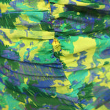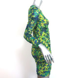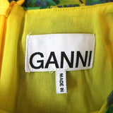 GANNI Ruched Mesh Mini Dress Yellow/Green Sulphur Spring Print Size 32