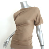 Giambattista Valli Asymmetric Short Sleeve Knit Top Tan Wool-Cashmere Size 44