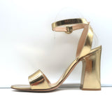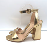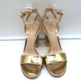 Gianvito Rossi Ankle Strap Block Heel Sandals Gold Mirrored Leather Size 38.5