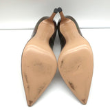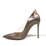 Gently worn. Good condition. one spot of halographic peeling on outside of left shoe and light wear on tips of toes and on heels above pins. Small scuff and spot of wear on interior side of right shoe above sole. Does NOT come with box or dustbag.