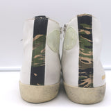Golden Goose Francy Camo-Trim High Top Sneakers White Leather Size 36