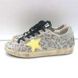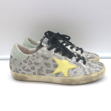 Golden Goose Superstar Glitter Leopard Sneakers Silver with Yellow Star Size 36