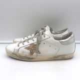Golden Goose Superstar Glitter-Star sneakers in white and silver leather (Size 38) offer the instantly recognizable, subtly distressed look the brand is known for while delivering strong pre-owned value and everyday wearability.