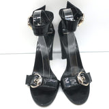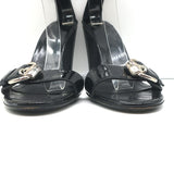 Gucci Buckle Sandals Black Patent Leather Size 10B Ankle Strap Heels
