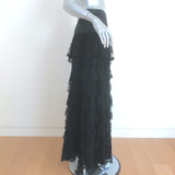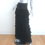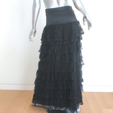 Heidi Merrick Tiered Lace Maxi Skirt Black Satin Size 2