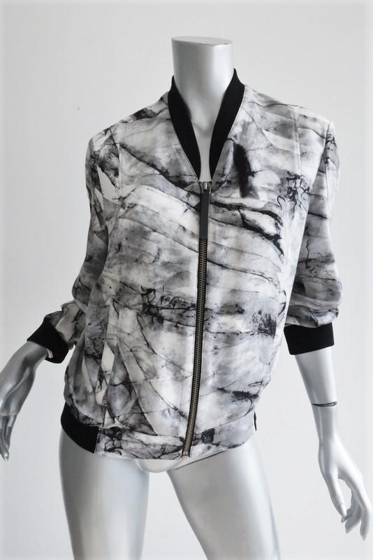 Helmut Lang Bomber Jacket Terrene White/Gray Printed Silk Size Petite -
