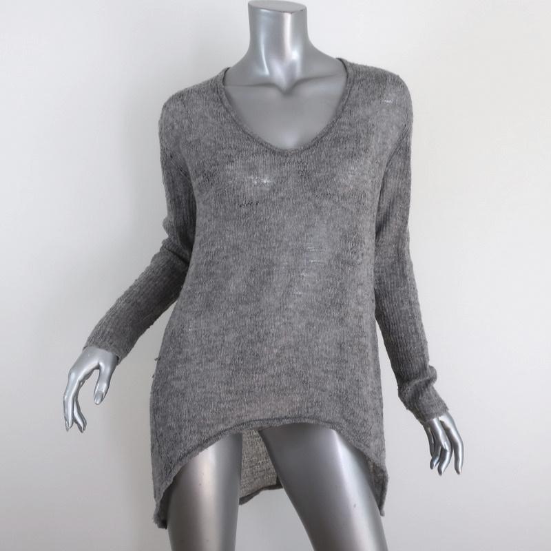 Helmut Lang Sweater Gray Uneven Stitch Knit Size Small V-Neck Pullover