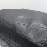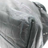 Henry Beguelin Large Fold-Over Shoulder Bag Black Croc-Embossed Leather