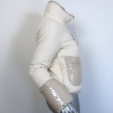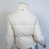 Herno Tweed Down Puffer Jacket Cream Cotton-Blend Size 36 NEW