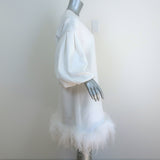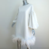 Huishan Zhang Poppy Mini Dress White Feather-Trimmed Crepe Size US 6