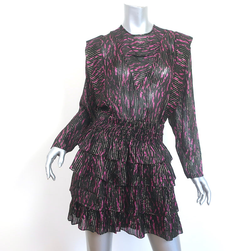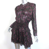 IRO Anael Ruffled Mini Dress Black/Fuchsia Lurex-Striped Silk Size 36 NEW