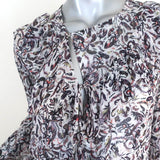 IRO Blouse Voodoo White/Multi Printed Ruffled Chiffon Size 34 Long Sleeve Top