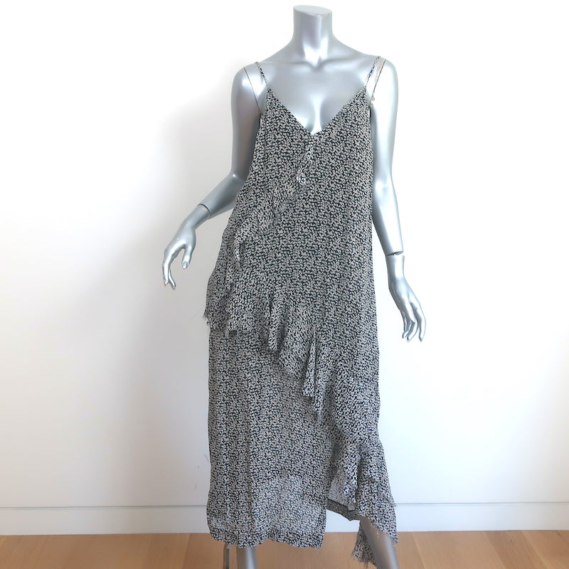 IRO Granby Ruffled Midi Dress Black/Ecru Printed Chiffon Size 36