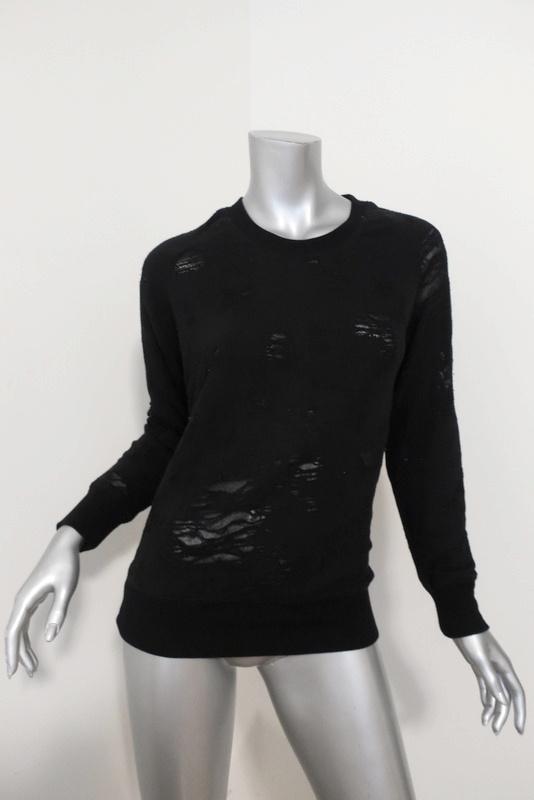 IRO JEANS Sweatshirt Nona Black Destroyed French Terry Size Extra Small -
