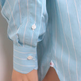 Sandro Striped Cotton-Paneled Lace Blouse White/Blue Size 2 Long Sleev...