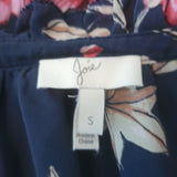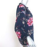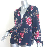 Joie Corsen Tie-Sleeve Button Down Blouse Navy Floral Print Silk Size Small