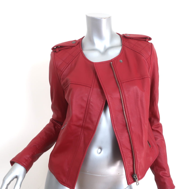 Joie Moto Jacket Koali Red Quilted Leather Size Small Biker Jacket