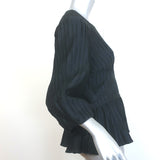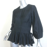 Jonathan Simkhai Blouson-Sleeve Drawstring Top Black Pleated Satin Size 6