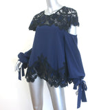 Jonathan Simkhai Cutout Guipure Lace-Paneled Blouse Navy/Black Silk Size Large