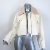 Khaite Flinn Faux Fur-Collar Cropped Corduroy Jacket Cream Size 2