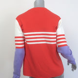 Kule Striped Crewneck Sweater Coral Red/Cream/Lavender Size Small