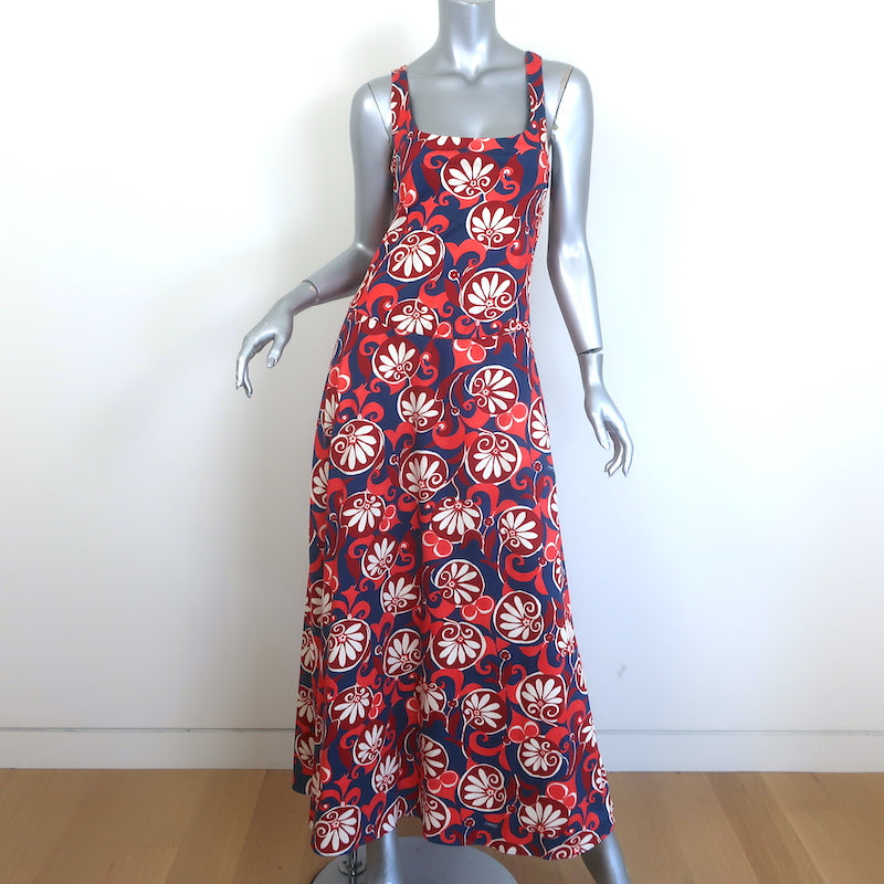 La DoubleJ Flipper Maxi Dress Navy/Red Moonflower Print Cotton Size Medium