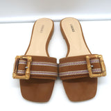 Pre-loved. Good condition. No major flaws, light wear along top edges of straps. A couple of small scuffs on interior sides of straps. Thin scratch in suede on interior side of right strap. Does NOT come with box or dustbag. Retails for $295!