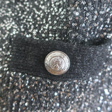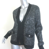 L'Agence Jinny Sequin Cardigan Black/Silver Metallic Knit Size Medium