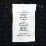 43% polyester, 10% rayon, 16% nylon, 9% cotton, 2% metallic
