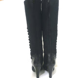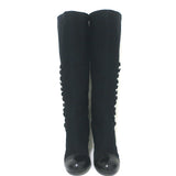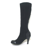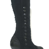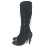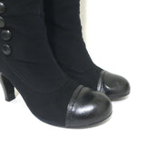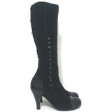 Lanvin Cap Toe Buttoned Knee High Boots Black Corduroy & Leather Size 39