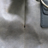 Pre-loved. Small smudges throughout canvas. Light wear on bottom corners. Scuffs on base. Snap is missing from right side. One of leather zipper pulls has fallen off. Does not come with shoulder strap. 14.5" high x 20" wide x 13.5" deep