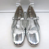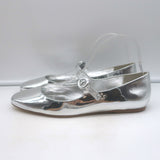 Larroude Blair Mary Jane Ballet Flats Silver Mirrored Leather Size 9 NEW
