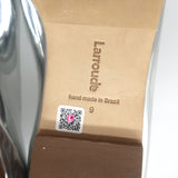 Why choose pre-owned Larroude? Buyers frequently praise Larroude flats for combining wearable comfort with luxury finishing—buying a gently used pair like this offers access to that refined construction and distinctive mirrored-leather look at meaningful savings. The subtle signs of storage wear are cosmetic and do not detract from the shoe’s overall polish or wearability.
