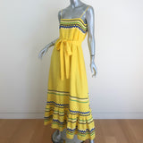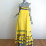 Lisa Marie Fernandez Ric Rac-Trimmed Ruffled Maxi Dress Yellow Linen Size III