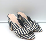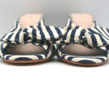 Loeffler Randall Bow Mules Navy/Cream Striped Canvas Size 6 Peep Toe Sandals