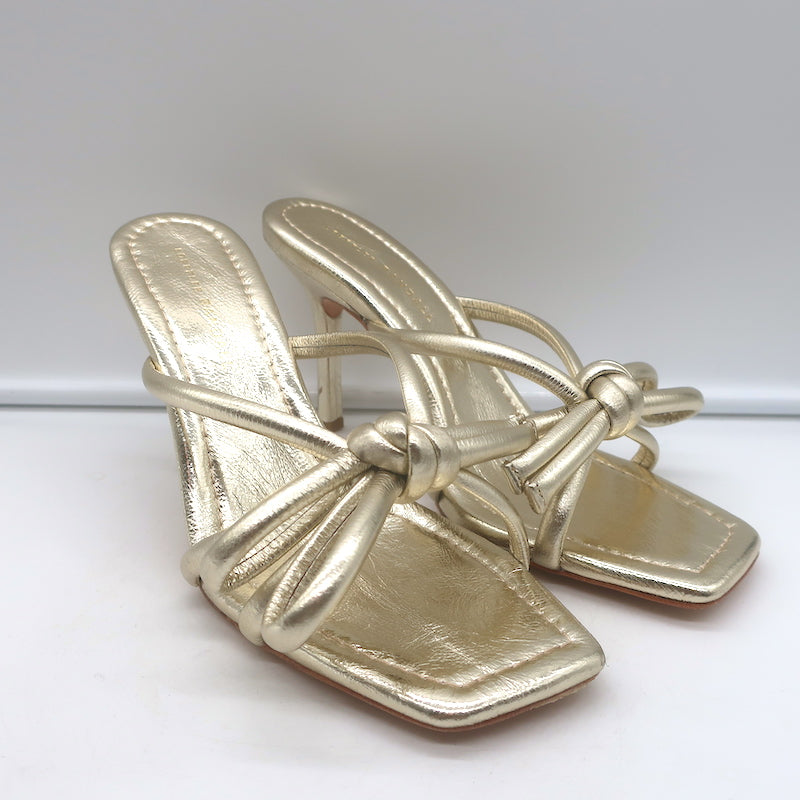 Loeffler Randall Margi Bow Sandals Gold Metallic Leather Size 9 NEW