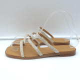 Loewe Crystal-Embellished Flat Slide Sandals Beige Suede Size 35