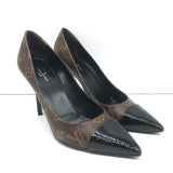 Louis Vuitton Fetish Cap Toe Pumps Brown Monogram Canvas & Black Patent Size 37