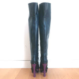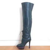 Louis Vuitton Lace-Up Thigh High Platform Boots Navy Leather Size 39