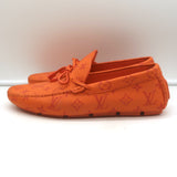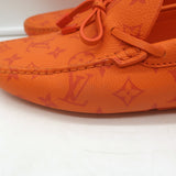 Louis Vuitton LV Driver Moccasins Orange Monogram Grained Leather Size 7.5
