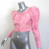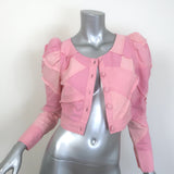 LoveShackFancy Eleora Cropped Puff Sleeve Jacket Pink Patchwork Cotton Size 00