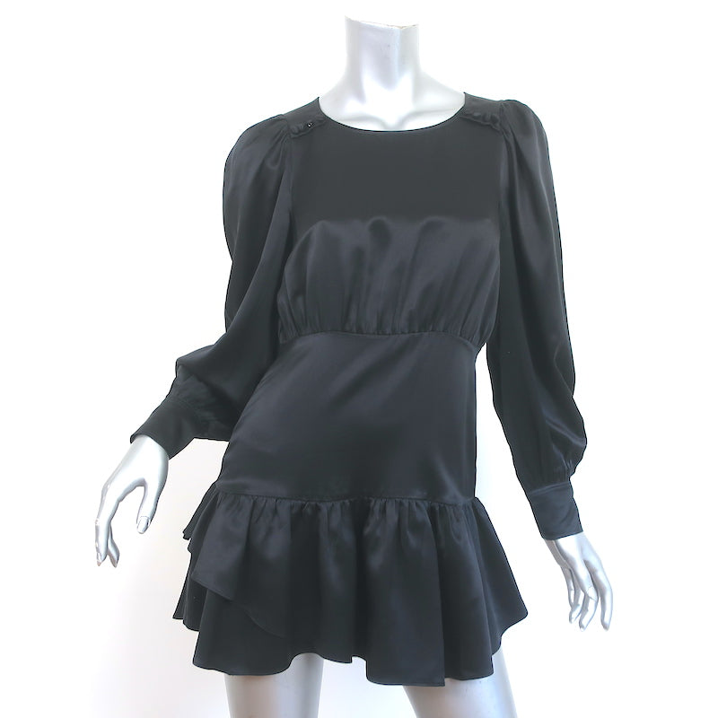 LoveShackFancy Long Sleeve Mini Dress Teyana Black Silk Size 0