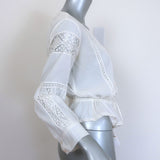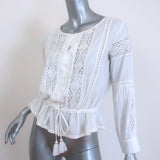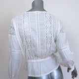 LoveShackFancy Long Sleeve Peplum Top White Lace-Trimmed Cotton Size Small