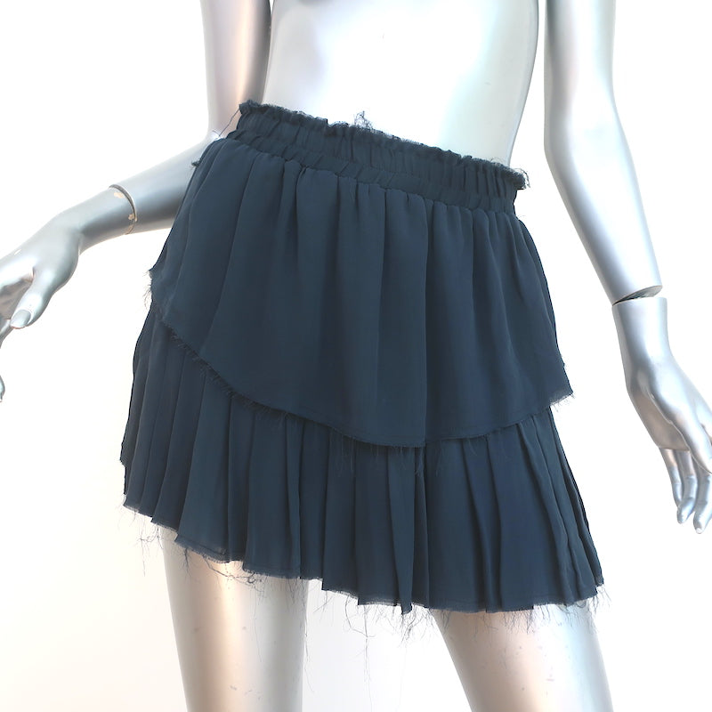 LoveShackFancy Ruffle Mini Skirt Navy Silk Size 2