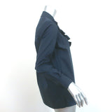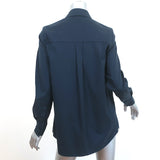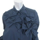 Machka Bow-Embellished Button Down Shirt Navy Poplin Size 36 Long Sleeve Top