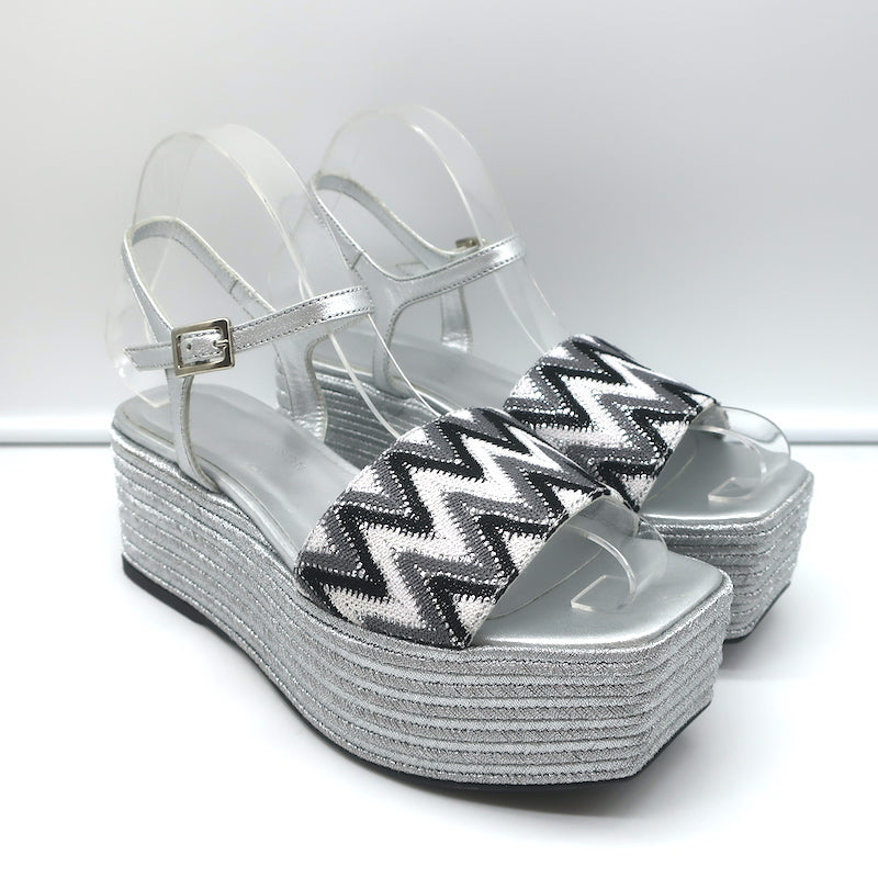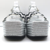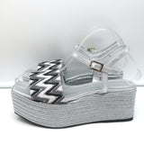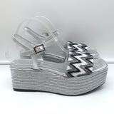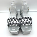 Madison Maison Woven Platform Wedge Sandals Silver Size 38 Ankle Strap Heels