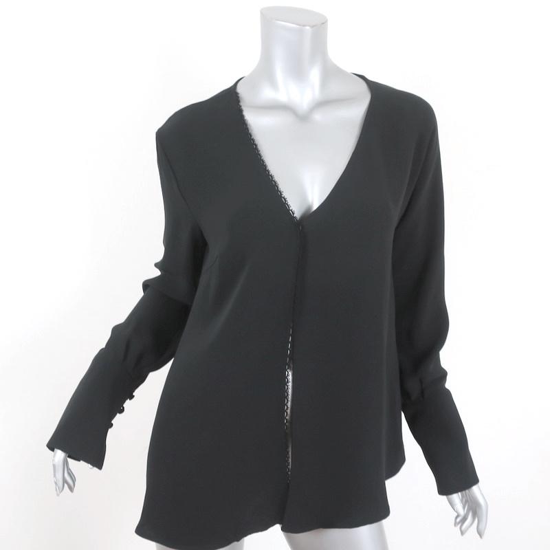 Magda Butrym Blouse Black Lace-Trim Silk Size 36 Long Sleeve Top