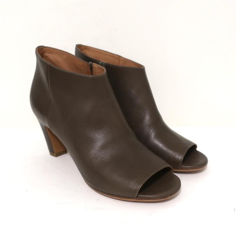 Maison Margiela Peep Toe Ankle Boots Brown Leather Size 39 Curved Heel Booties